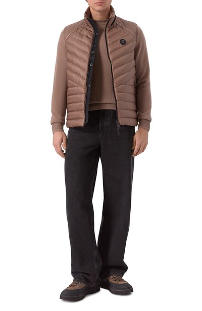 Жилет Lissity со стеганым полиэстеровым подкладом на синтетическом утеплителе связали шахматным узором из шерсти первого пострига. Модель с гладкой отделкой дополнили регулируемым капюшоном со стичингом по краю и боковыми карманами с молниями.