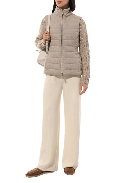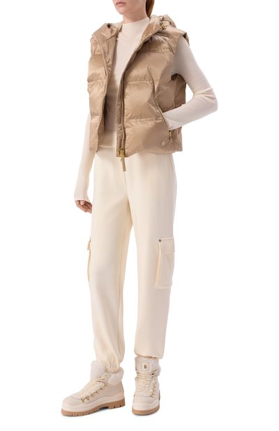 Жилет Lissity со стеганым полиэстеровым подкладом на синтетическом утеплителе связали шахматным узором из шерсти первого пострига. Модель с гладкой отделкой дополнили регулируемым капюшоном со стичингом по краю и боковыми карманами с молниями.