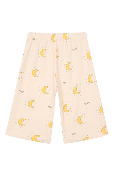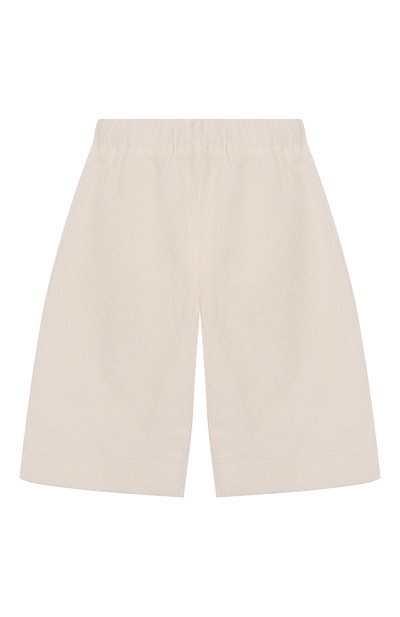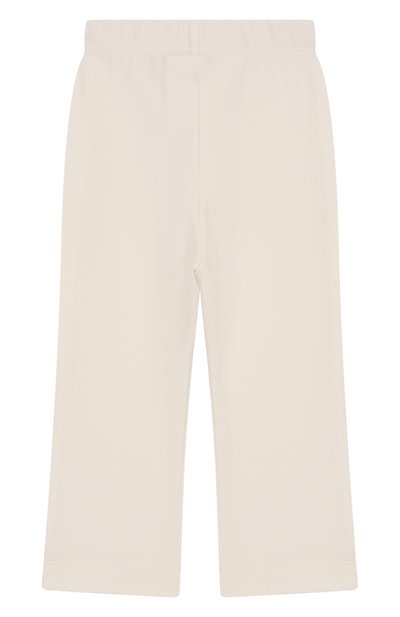 Широкие расклешенные брюки с эластичным поясом выполнили из хлопкового вельвета. Модель с оборками на низе декорировали миниатюрным сердцем спереди.