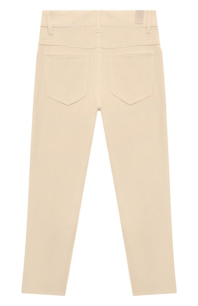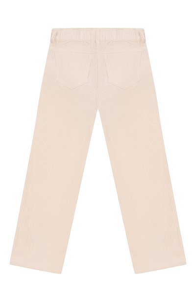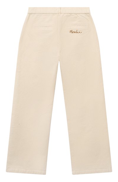 Расклешенные брюки с двумя боковыми карманами выполнили из хлопкового вельвета. Пояс с эластичной вставкой сзади дополнили брендированной пластиной спереди.