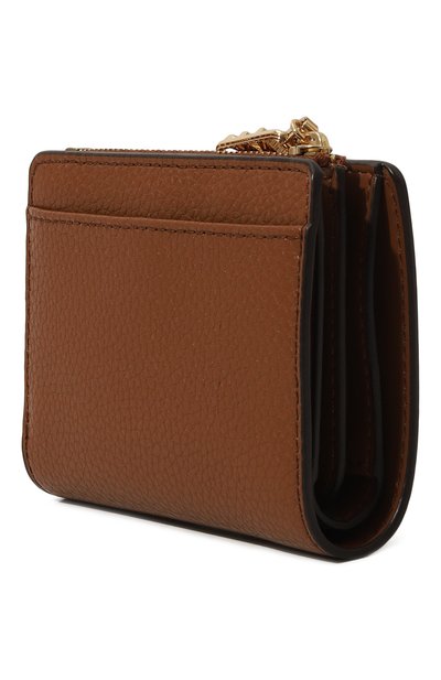 Кошелек Furla Dots с фирменной гравировкой на знаковых сферах рамочного замка выполнили из телячьей кожи Sidney. Аксессуар с двумя отделениями внутри украсили тисненым логотипом.