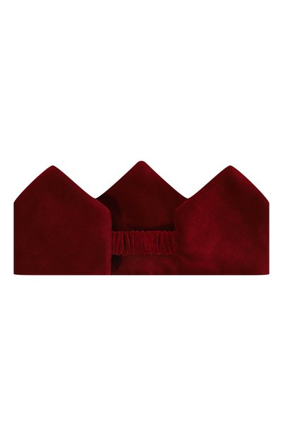 Повязку на голову выполнили из мягкого хлопкового трикотажа. Аксессуар с эластичной перемычкой сзади декорировали крупным бантом с аппликациями-бутонами из узких атласных лент.