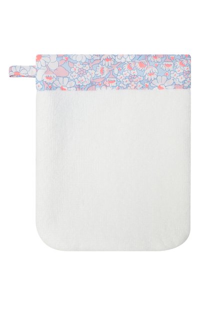 Для изготовления прямоугольного одеяла использовали интерлок из органического хлопка. Центр изделия украсили брендированным принтом Teddy Bear, которому вторит паттерн вдоль краев с оборками и на изнанке.