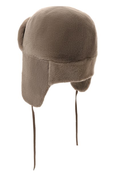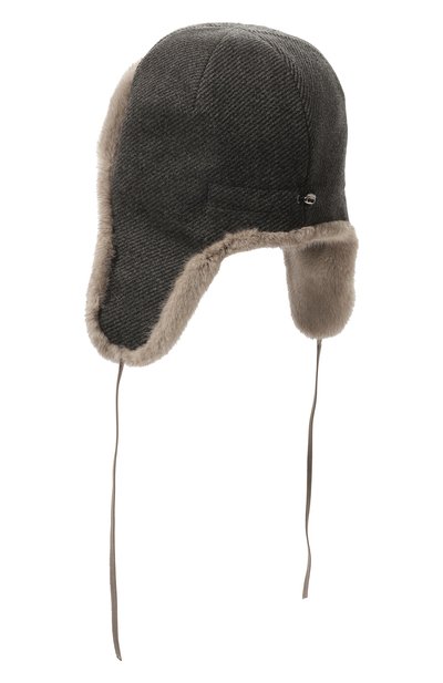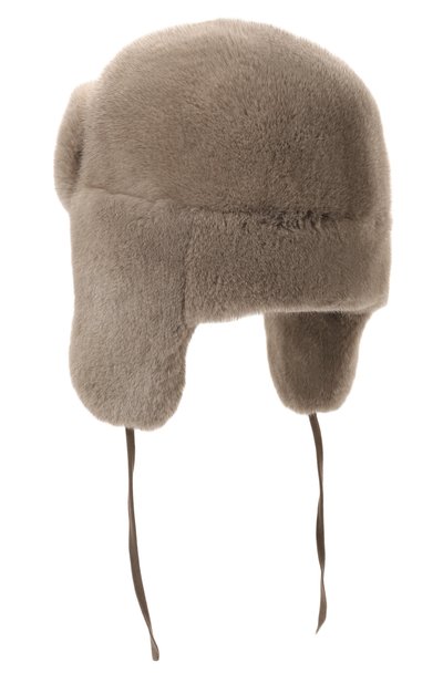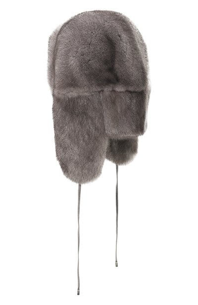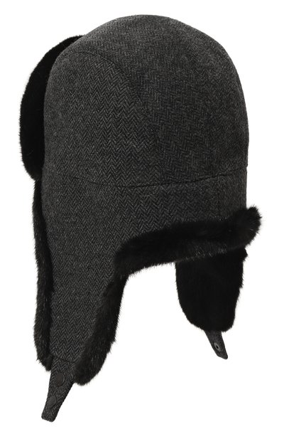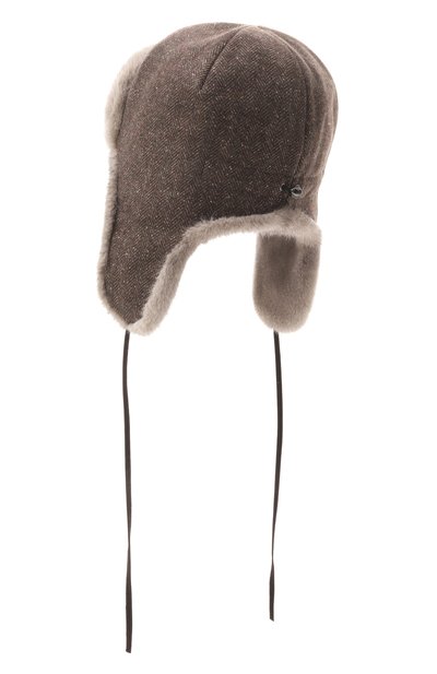 Шапку-ушанку «Бруклин» из кашемирового трикотажа с шевронным узором отделали мехом норки. Аксессуар с широкими наушниками, кожными шнурами и фирменным подкладом дополнили сзади эластичной кулиской с фиксатором.