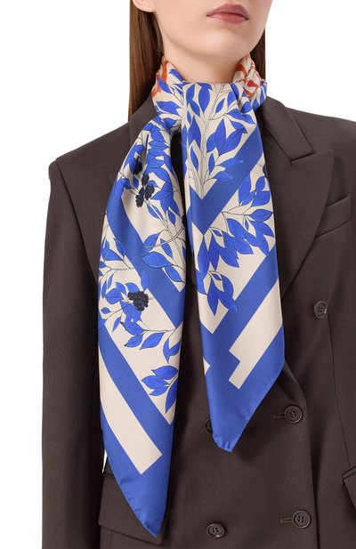Платок Pas de Deux из коллекции The Jurassian выполнили из шелкового твила, сертифицированного Oeko-Tex® Standard 100. Края аксессуара с брендированным принтом обработали в технике hand-rolled.