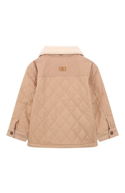 Парку с подкладом из экомеха, напоминающего стриженую овчину, выполнили из полиэстера. Модель на брендированных кнопках дополнили манжетами из трикотажа в рубчик, накладными боковыми карманами с клапанами и вшитой на талии резинкой.