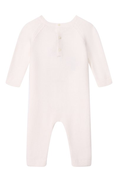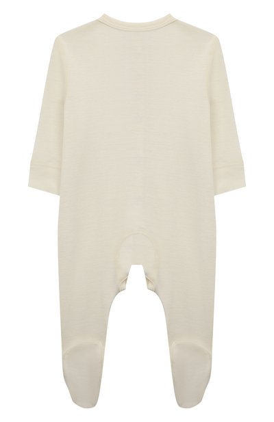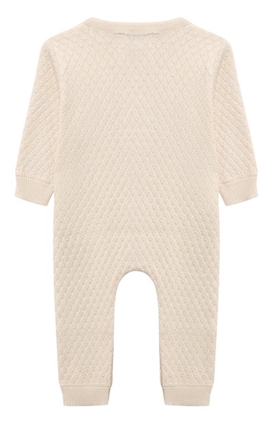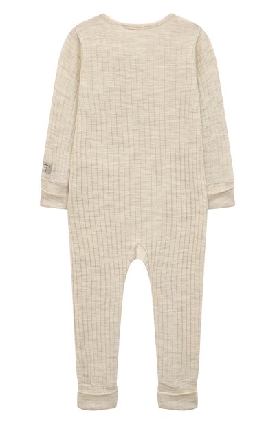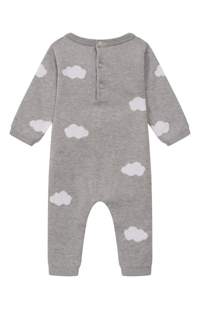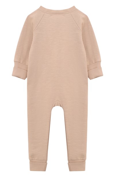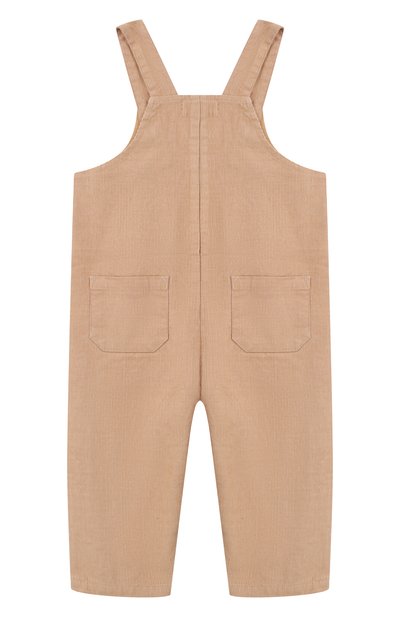 Стеганый комбинезон из джерси на основе органического хлопка декорировали вышивкой в виде ежика. Модель с трикотажными манжетами в рубчик дополнили пуговицами по бокам и на бретелях.