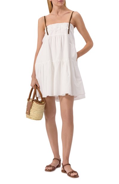 Мини-платье L'etoile Du Sud с открытой спиной сшили из шелка. Глубокий V-образный вырез подчеркнули золотистым цветком. Модель с завышенной линией талии дополнили тонкими шнурами с жемчужными подвесками.