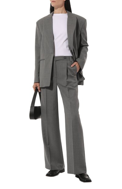 Приталенный жакет с акцентированными плечами составит гармоничный дуэт с парной миди-юбкой. Для пошива модели с круглой горловиной и боковыми карманами выбрали стрейчевую ткань на основе шерсти. Изделие на тонком подкладе застегивается обтяжными пуговицами.