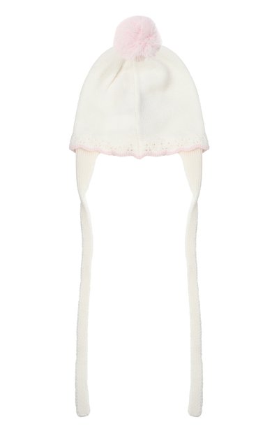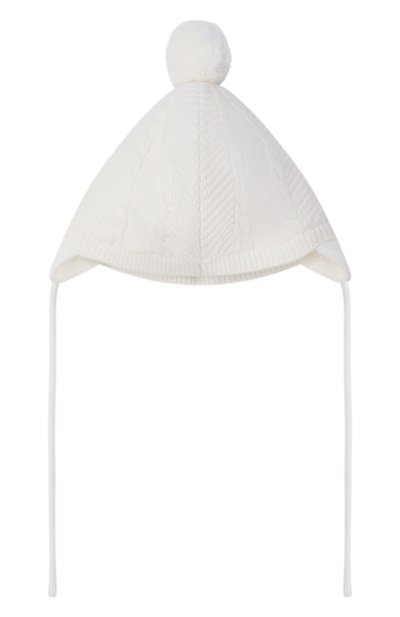 Для изготовления чепчика использовали трикотаж из чистой шерсти. Модель фиксируется завязками со скошенными концами.