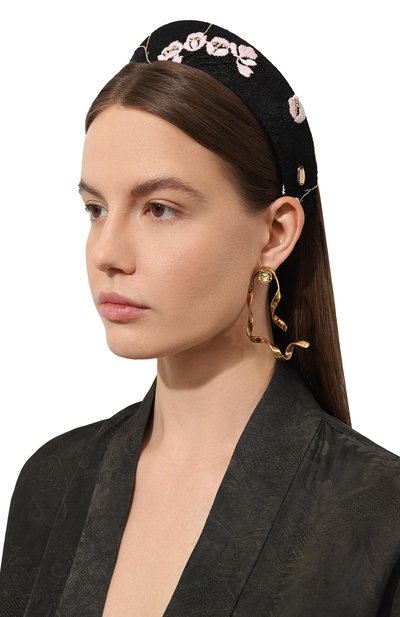 Кокошник с гибким пластиковым каркасом обтянули жаккардовым миксом шелка и полиэстера. На внутренней стороне ободка разместили рельефную репсовую ленту.