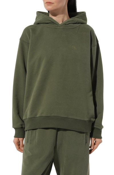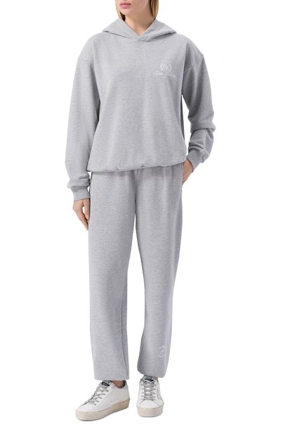 Костюм SK New Ivy выполнили из меланжевого хлопка с добавлением полиэстера. Худи с приспущенной линией плеч и джоггеры с двумя карманами украсили спереди брендированной надписью.