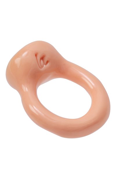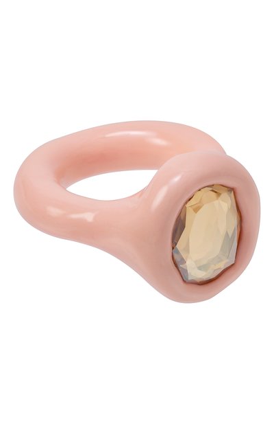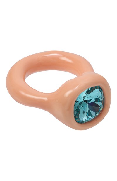Кольцо выполнили вручную из полимерной глины и покрыли прозрачным глянцевым лаком. Аксессуар с тисненой эмблемой марки декорировали крупным кристаллом Swarovski в форме сердца.