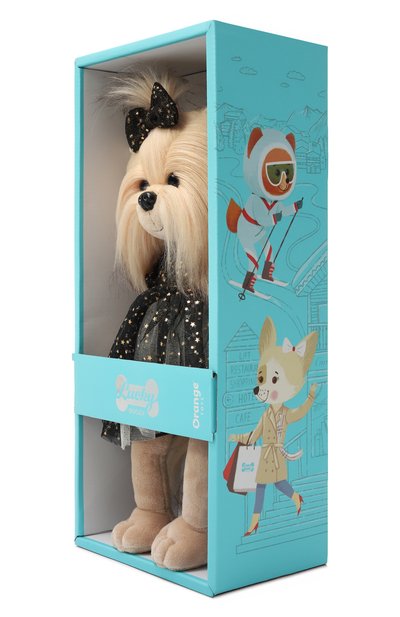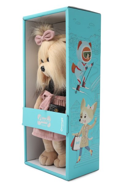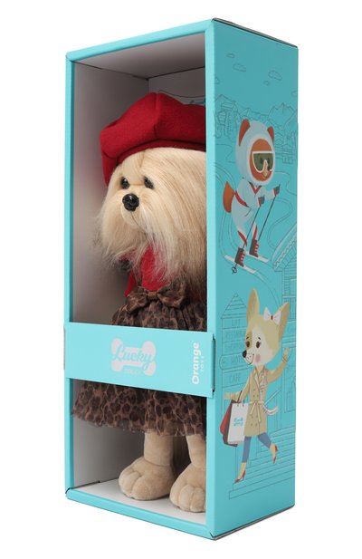 Игрушку Lucky Yoyo из коллекции Lucky Doggy выполнили в виде йоркширского терьера из искусственного меха. Модель с каркасом и гнущимися лапками нарядили в трикотажное платье, челси и леопардовое пальто, а прическу украсили бантом. Игрушка подойдет для детей старше трех лет.