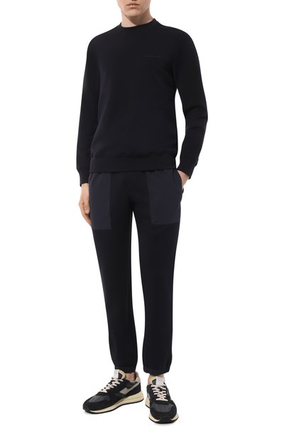 Джоггеры Bono с эластичным поясом-кулиской и боковыми карманами на молниях выполнили из стрейчевой фланели на основе полиэстера и вискозы. Сзади модель украсили нашивкой и эмблемой марки.