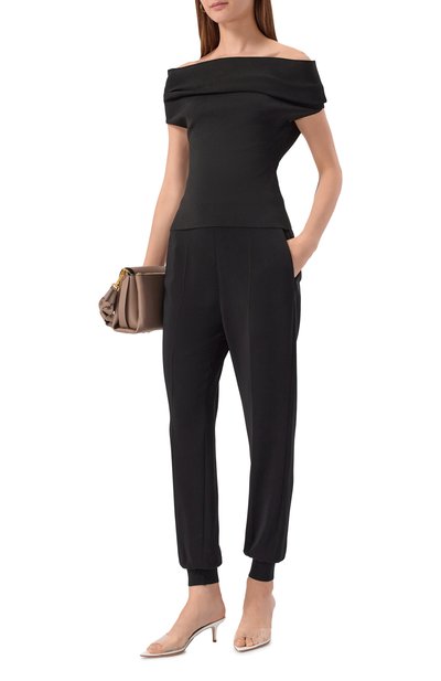 Джоггеры Kimmie с высокой посадкой и широким поясом сшили из эластичной фланели. Брюки с лампасами из нейлонового рипстопа дополнили задними накладными карманами и боковыми врезными на молниях.