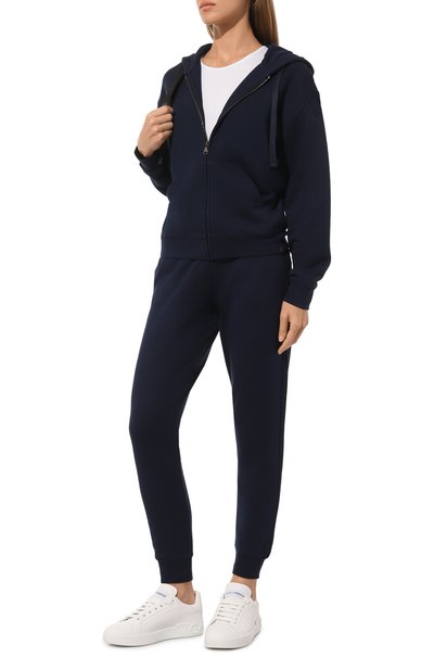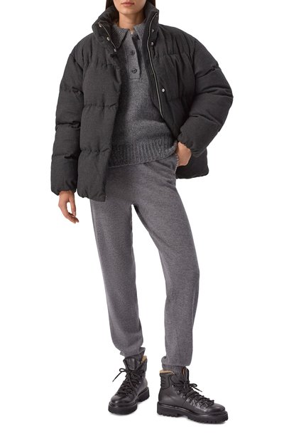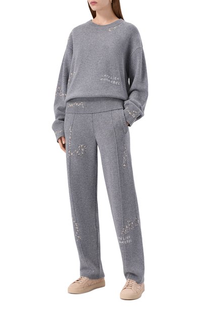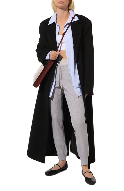 Джоггеры Kimmie с высокой п осадкой и широким поясом сшили из эластичной фланели. Брюки с лампасами из нейлонового рипстопа дополнили задними накладными карманами и боковыми врезными на молниях.