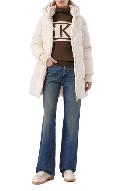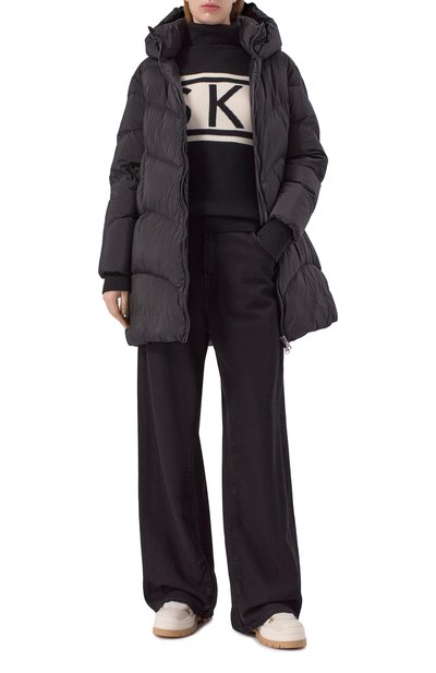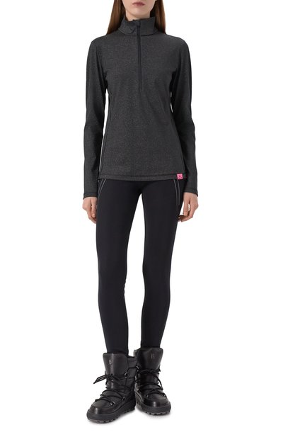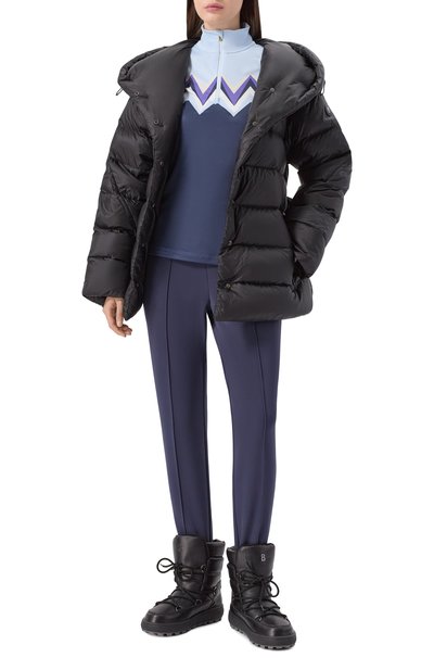 Пуловер Jelissa с жаккардовыми вставками сшили из матового полиамидного джерси. Левый рукав украсили прорезиненным фирменным патчем. Модель с воротником-стойкой застегивается молнией с пуллером в виде литеры B.