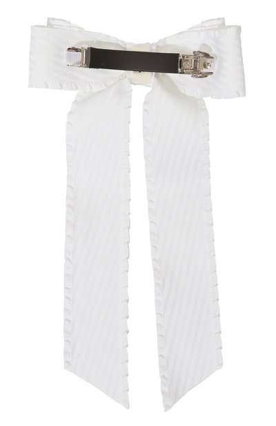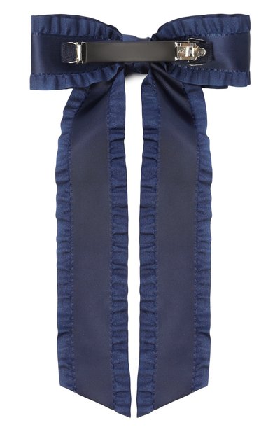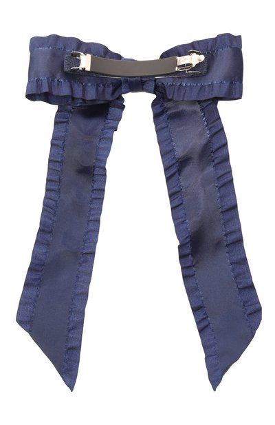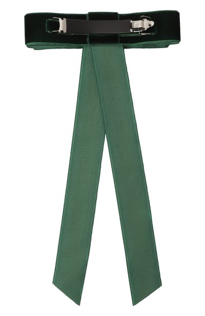 Для изготовления двойного банта с длинными фалдами использовали бархат. Модель дополнили металлической заколкой-автоматом с накладкой.