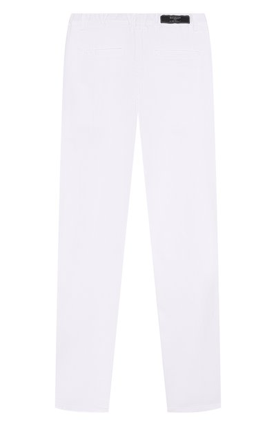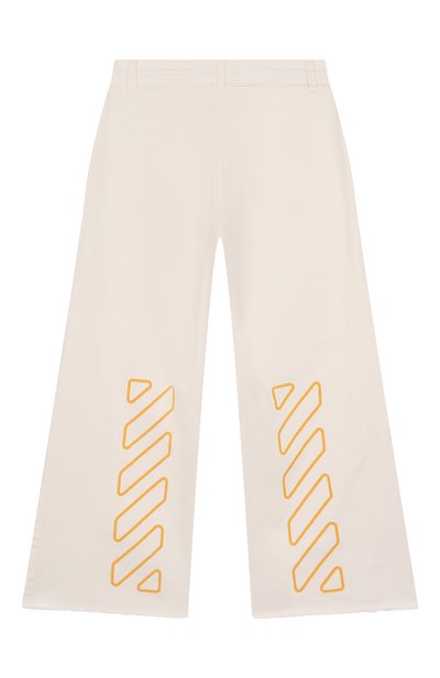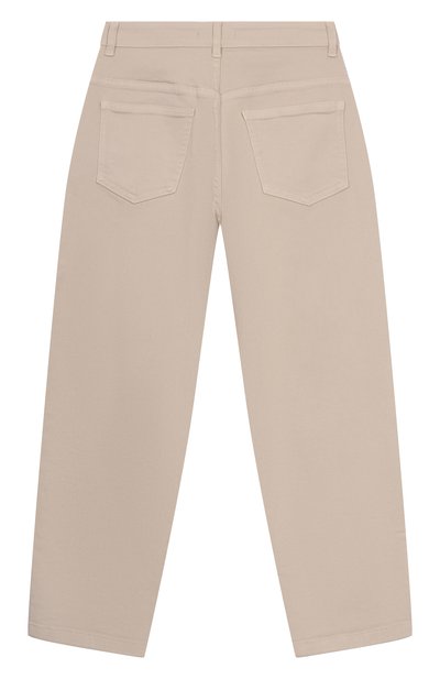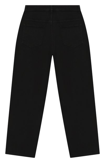 Представленные эксклюзивно в ЦУМе широкие джинсы выполнили из хлопка с небольшим добавлением эластана. Под передними шлевками модели с двумя карманами по бокам и парой листочек сзади заложили двойные защипы.