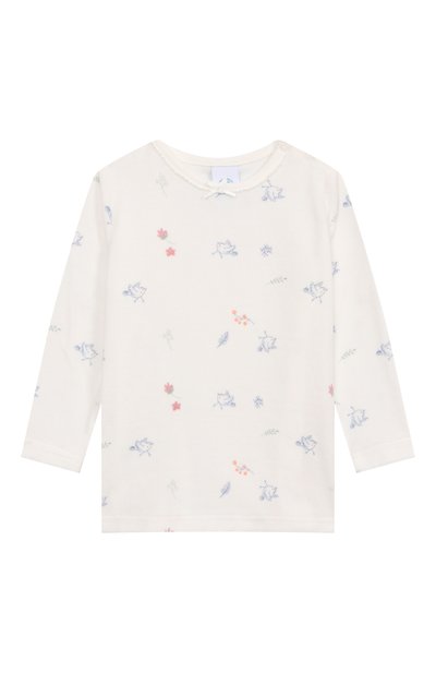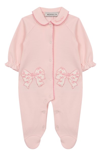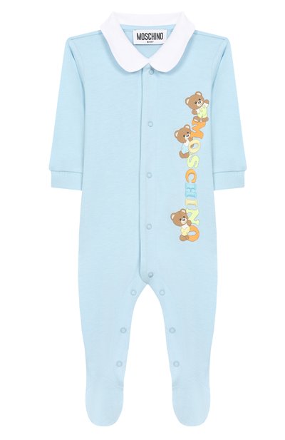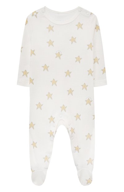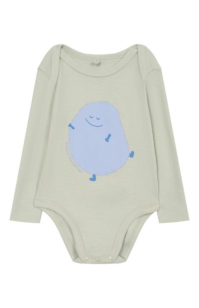 Комбинезон с паттерном Dove выполнили из органического хлопка, сертифицированного GOTS. Модель с закрытыми стопами застегивается кнопками на плечах и вдоль шаговых швов. В комплекте – боди с застежкой на низе, украшенное принтом спереди.