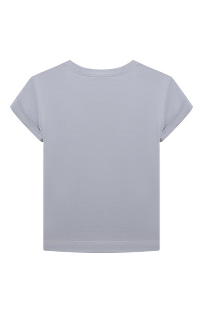 Футболку с круглой горловиной в рубчик выполнили из джерси на основе органического хлопка, сертифицированного GOTS. Спереди модель украсили фигурной вставкой с аппликацией в виде птиц, дополненной вышивкой.