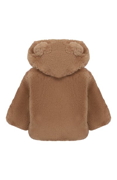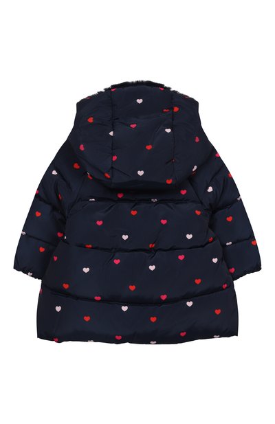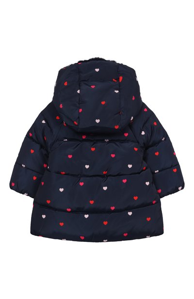 Утепленную стеганую куртку выполнили из переработанного материала с принтом Monster, отделав капюшон искусственной овчиной. Модель с двумя карманами по бокам застегивается молнией.