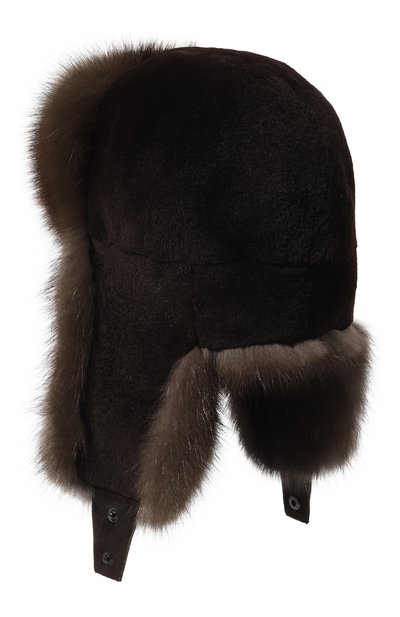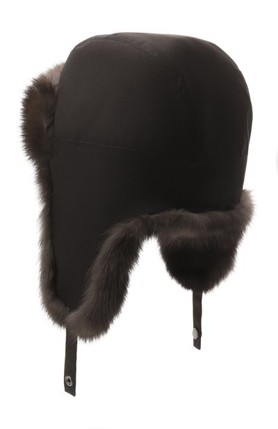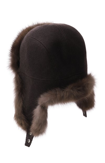 Шапку-ушанку Modern, утепленную гусиным пухом и полиэстером, выполнили из кашемира и меха соболя. Широкие наушники дополнили ремешками на кнопках, а на затылке предусмотрели эластичную вставку.