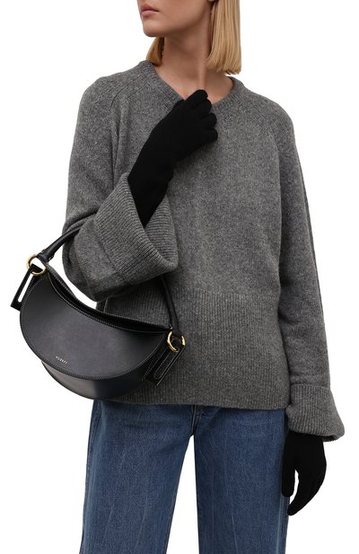 Перчатки Gamma связали из кашемировой пряжи. Удлиненный аксессуар дополнили широкой манжетой, выполненной рифленым узором.