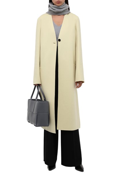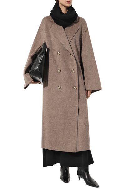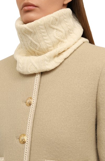Для создания эластичного шарфа-снуда Portugal использовали двуслойный кашемировый трикотаж. Меланжевый аксессуар без декора удачно дополнит образ с пальто или курткой.