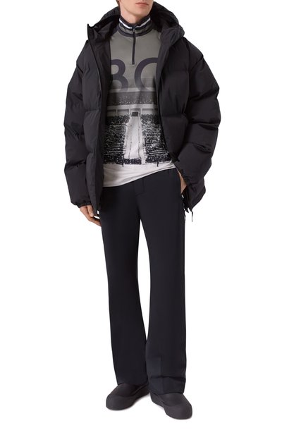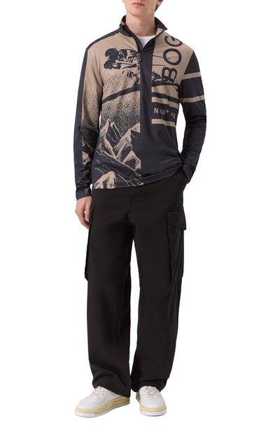 Лонгслив Verti с брендированным принтом выполнили из микса полиэстера и эластана. Высокий воротник модели застегивается молнией с фирменным пуллером-литерой, который перекликается с эмблемой на левом рукаве.