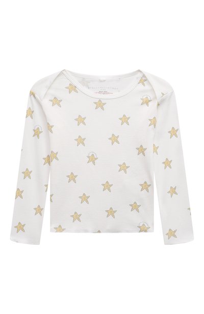 Эластичную пижаму сшили из велюрового хлопкового трикотажа с добавлением полиэстера. Лонгслив с кнопками на плече и бантом на круглом вырезе дополнили брюками с широким поясом.