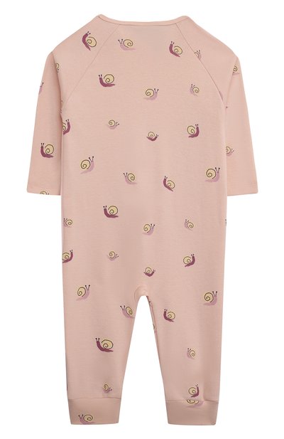 Комбинезон с принтом в виде осликов выполнили из трикотажа на основе органического хлопка, сертифицированного по стандартам Gots и Oeko-Tex®. Снизу предусмотрели отвороты, которые закрывают ступни. Модель застегивается молнией по всей длине, а круглая горловина – кнопкой.