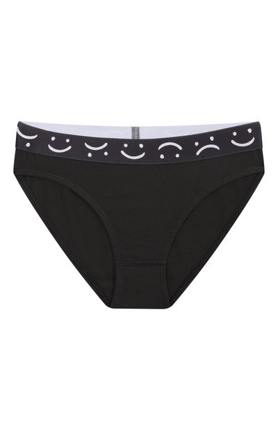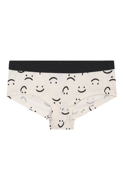 Для пошива трусов выбрали стрейчевое джерси на основе модала и хлопка. Эластичный пояс декорировали кружевом и атласным бантом. В комплекте две модели: однотонная и с цветочным принтом.