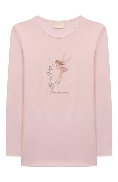 Для изготовления пижамы использовали микс хлопка и модала. Рисунок Lang rosa blumen на однотонном лонгсливе поддержали цветочным паттерном на брюках с эластичным поясом.