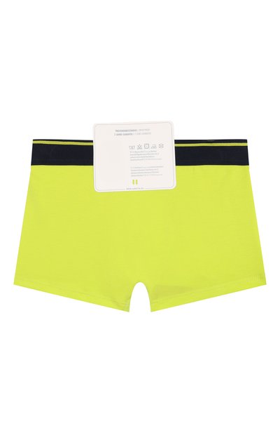 Для пошива боксеров использовали эластичный трикотаж из хлопка, сертифицированного по стандарту OEKO-TEX®. Пояс-резинку украсили контрастным жаккардовым узором в виде динозавров. В комплекте – две модели разных цветов.