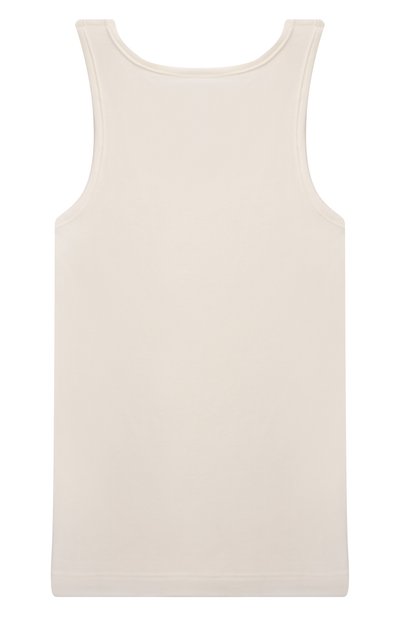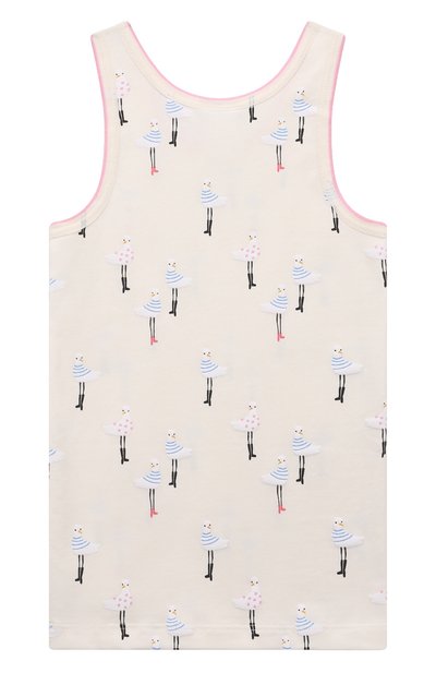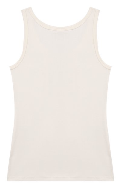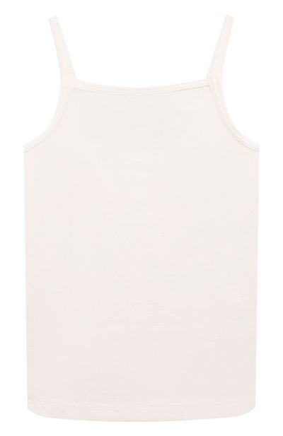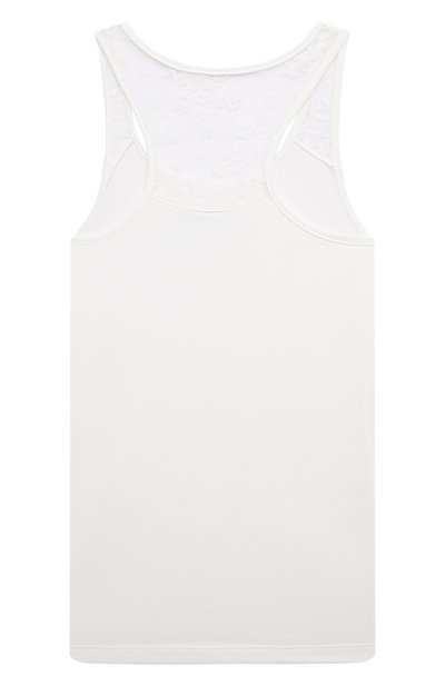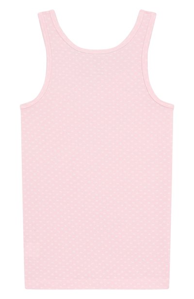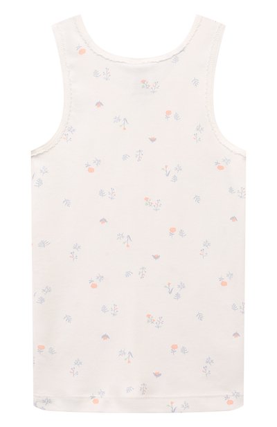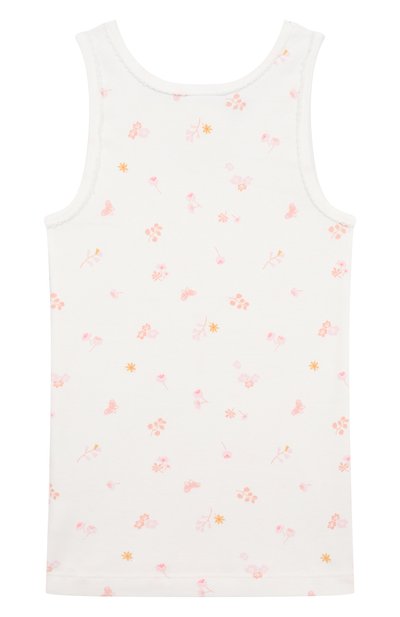Майку с микропаттерном выполнили из ажурного трикотажа на основе хлопка и модала. Спереди модель с кантом в рубчик украсили миниатюрным атласным бантом.