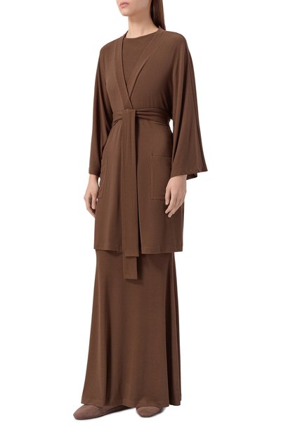 | Параметры изделия для размера S Обхват груди 104 см, длина рукава от горловины 63 см, длина изделия по спинке 87 см. В комплект входит: пояс. |