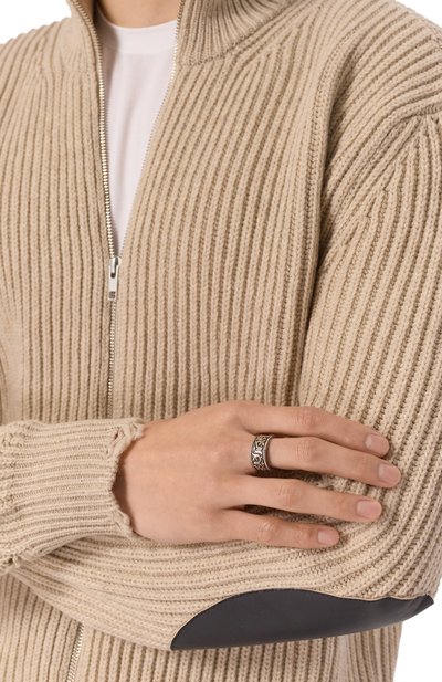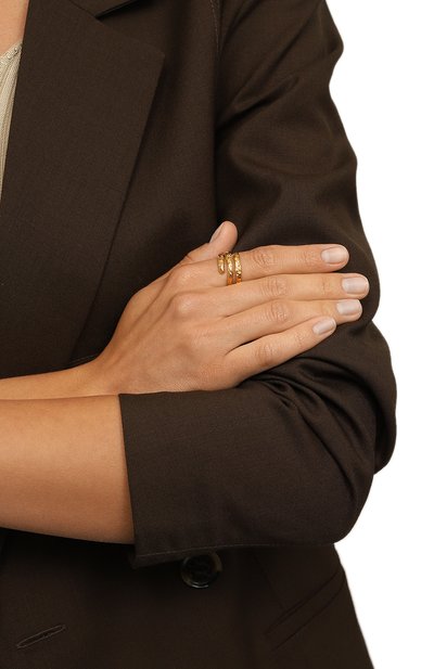 Широкое кольцо Dusk Orchid собрали из трех нитей разноразмерных жемчужин майорка. Аксессуар декорировали крупным голубым кристаллом в оправе из покрытого родием ювелирного сплава, инкрустированной прозрачными фианитами.