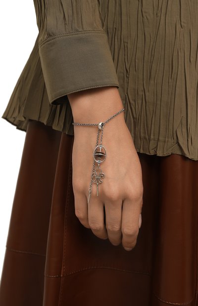 Браслет-слейв Forbidden Rose с шармами-бутонами выполнили из циркона и перламутра. Посадку модели можно регулировать при помощи цепочки и застежки «лобстер» из ювелирного сплава с родиевым покрытием.