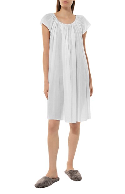 Сорочку выполнили из хлопкового трикотажа. Спереди модель украсили фирменной тисненой эмблемой под круглой горловиной.