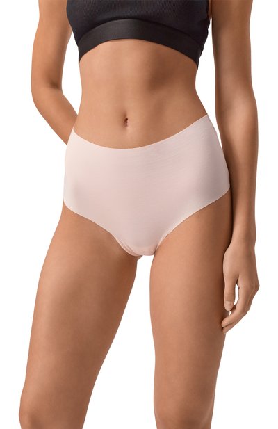 Для с оздания трусов с завышенной талией использовали эластичное нейлоновое джерси с леопардовым принтом. Бесшовную модель из линии Soft Stretch дополнили хлопковой ластовицей.