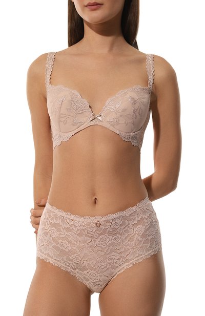 Х ипстеры из коллекции Sublime изготовили из нейлонового жаккарда и цветочного кружева с фестонами, сертифицированных по стандарту Oeko-Tex®. Модель с высокой посадкой дополнили хлопковой ластовицей.