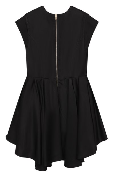 Прита ленное платье из вискозного атласа представлено эксклюзивно в ЦУМе. Лиф дополнили диагональными складками спереди, а двухслойный подол декорировали золотистыми пуговицами с фирменной литерой B. Модель с круглым вырезом застегивается молнией на спинке.