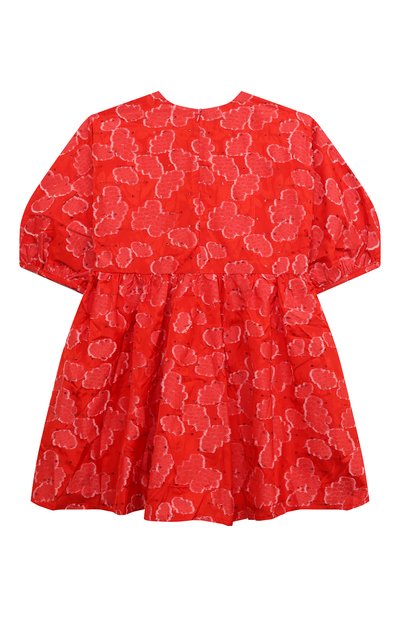 Платье из тафты украсили оборками на объемных рукавах и многоярусном подоле. Модель на подкладе из органического хлопка застегивается потайной молнией сзади.