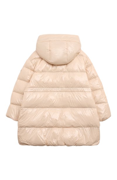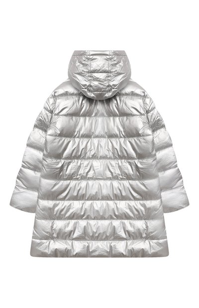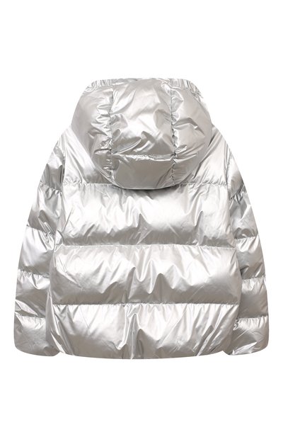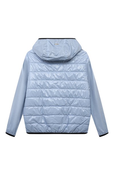 Утепленную стеганую куртку с капюшоном выполнили из полиэстерового рипстопа с полимерным покрытием. Один из боковых карманов и спинку украсили контрастным логотипом марки. Модель застегивается молнией.