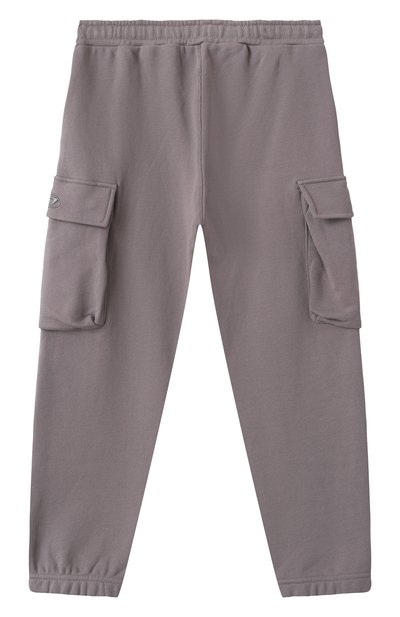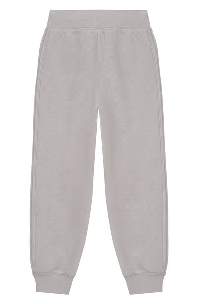 Джоггеры с ромбовидным узором, выполненным горячим тиснением, изготовили из стрейчевого полиэстера. Модель с эластичным поясом и боковыми карманами дополнили манжетами из рифленого трикотажа в тонкую полоску. Сбоку – накладка с эмблемой Double B.