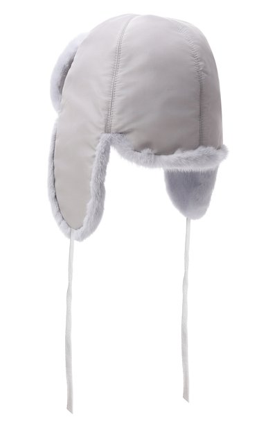 Шапку-ушанку выполнили из текстиля и контрастного меха норки. Широкие наушники модели можно закрепить под подбородком или на затылке при помощи длинных шнурков.