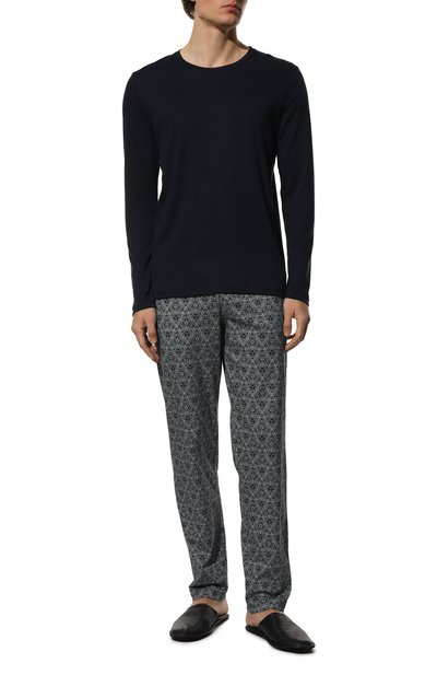 В коллекцию Night Selection вошла пижама из мерсеризованного хлопка. Для создания лонгслива с нагрудным карманом выбрали однотонное джерси, а для брюк с эластичным поясом – трикотаж с растительным мотивом.