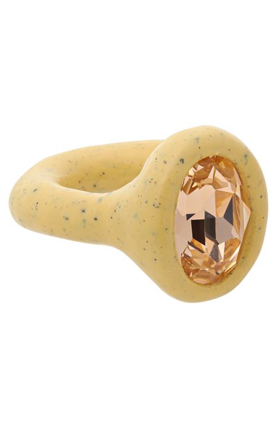 Кольцо с глянцевым лаковым покрытием изготовили вручную из полимерной глины. Украшение с тисненой эмблемой марки на внутренней стороне дополнили граненым кристаллом Swarovski.